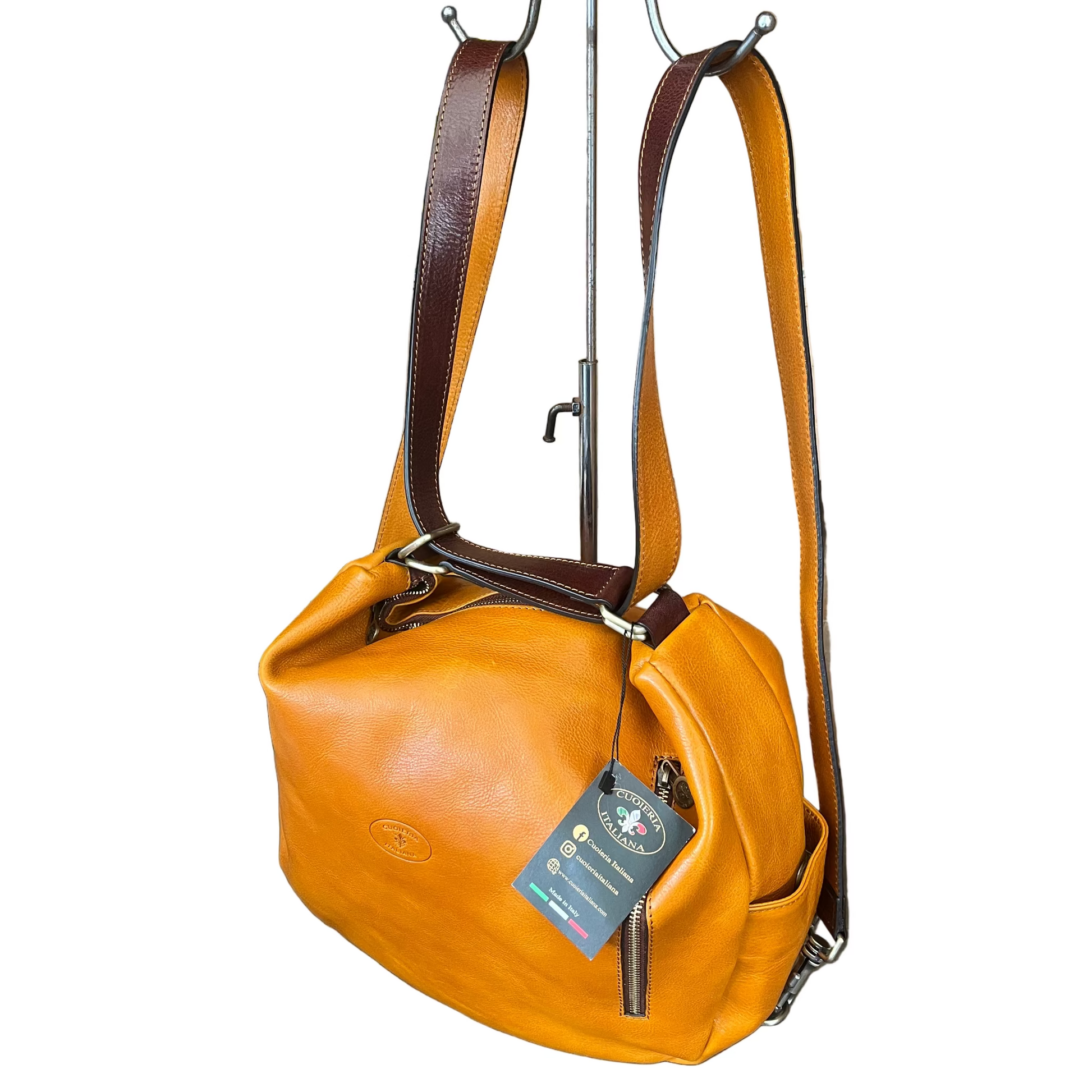 Sac à dos moyen réglable, l'élégance du sac et la praticité d'un sac à dos dans un seul produit ; bretelles à l'extérieur en cuir et à l'intérieur en coton, dont la tâche est d'améliorer le confort et d'éviter de glisser.