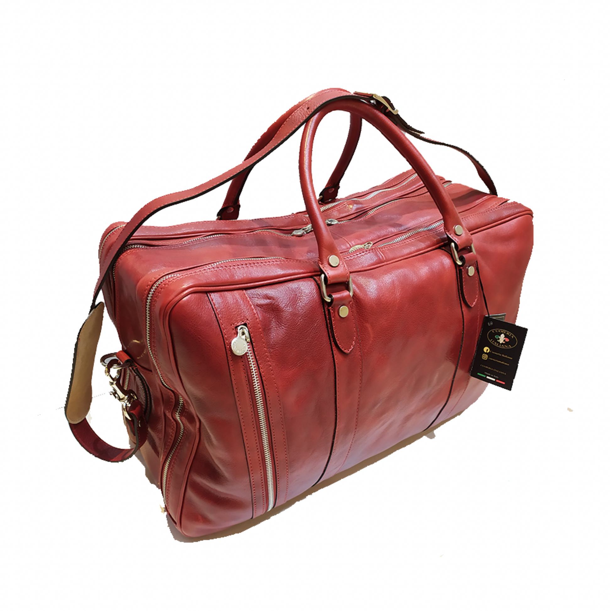 Ho recentemente acquistato questo borsone in pelle e devo dire che ha superato tutte le mie aspettative. La qualità del materiale è eccezionale: pelle morbida e resistente, con una finitura impeccabile che ne esalta l’eleganza. Il design è sofisticato e adatto a ogni occasione, sia per un look casual che più formale.
