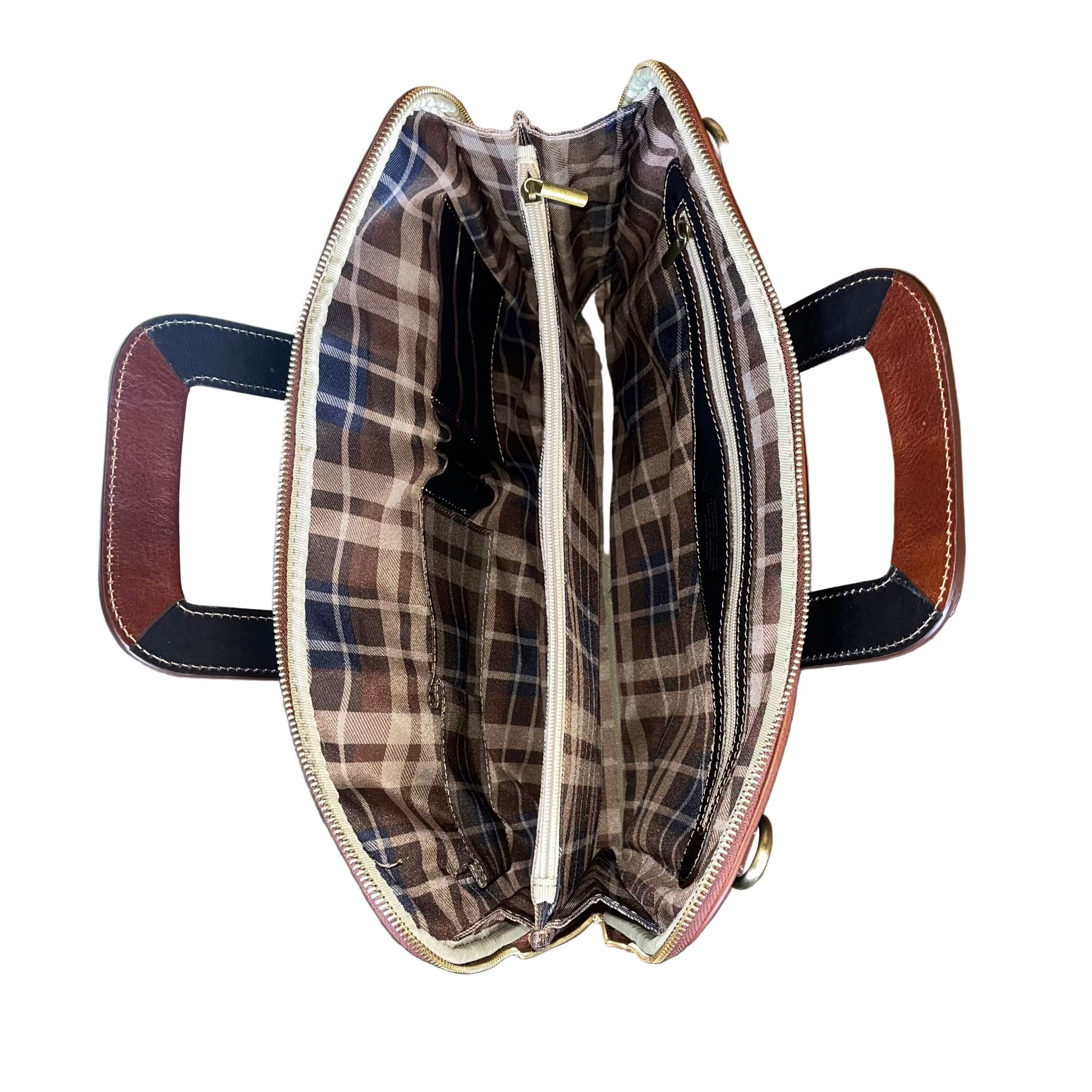 La mallette possède deux grands compartiments principaux, une poche extérieure et diverses poches intérieures. Il dispose également d'un porte-stylo, d'un porte-téléphone et d'un porte-cartes de crédit et la bandoulière est réglable et également entièrement en cuir.