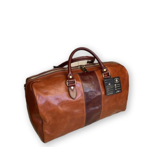 Borsone in pelle bicolore cuoio naturale | Bagaglio a mano artigianale Made in Italy – Cuoieria Italiana