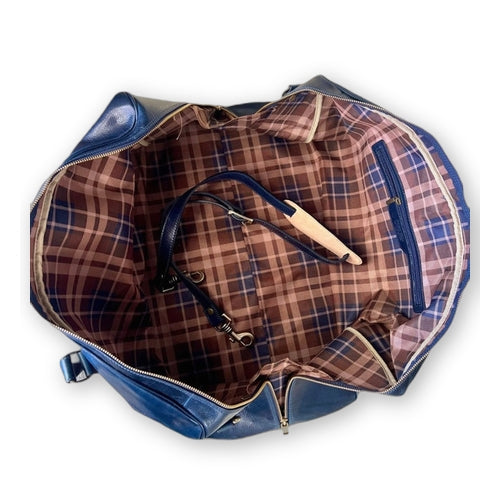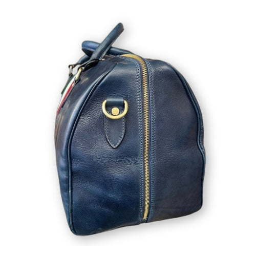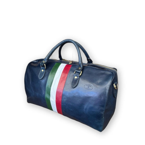 Borsone in pelle blu con tricolore | Bagaglio a mano artigianale Made in Italy – Cuoieria Italiana