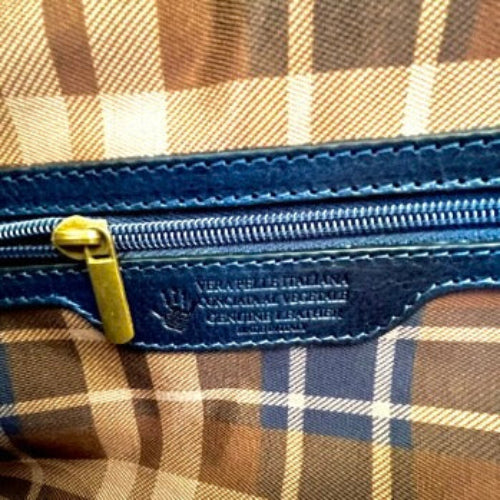Elegante e resistente, il Borsone in pelle blu con tricolore è realizzato a mano in vera pelle italiana conciata artigianalmente, per garantire qualità superiore e lunga durata.