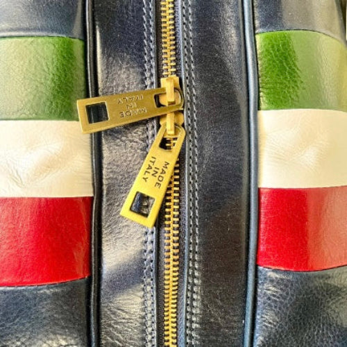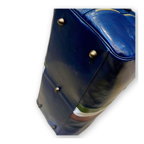 Borsone in pelle blu con tricolore – Cuoieria Italiana