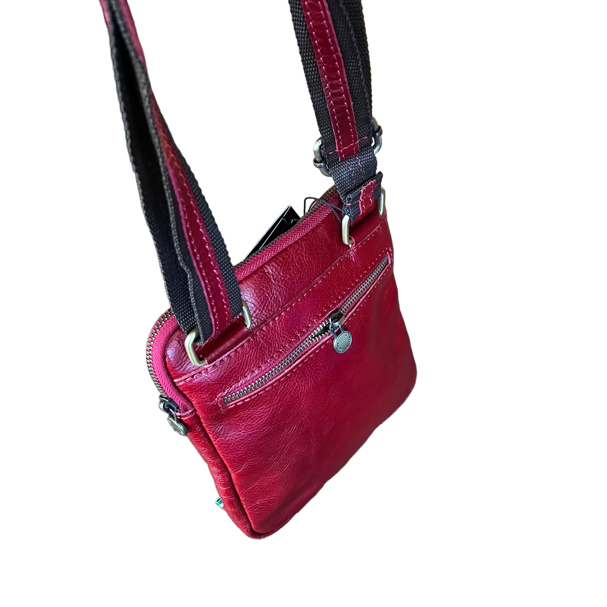 Dotato di tracolla regolabile in pelle per il massimo comfort, presenta tre tasche con zip – frontale, posteriore e interna – perfette per organizzare smartphone, portafoglio, chiavi e altri oggetti essenziali.