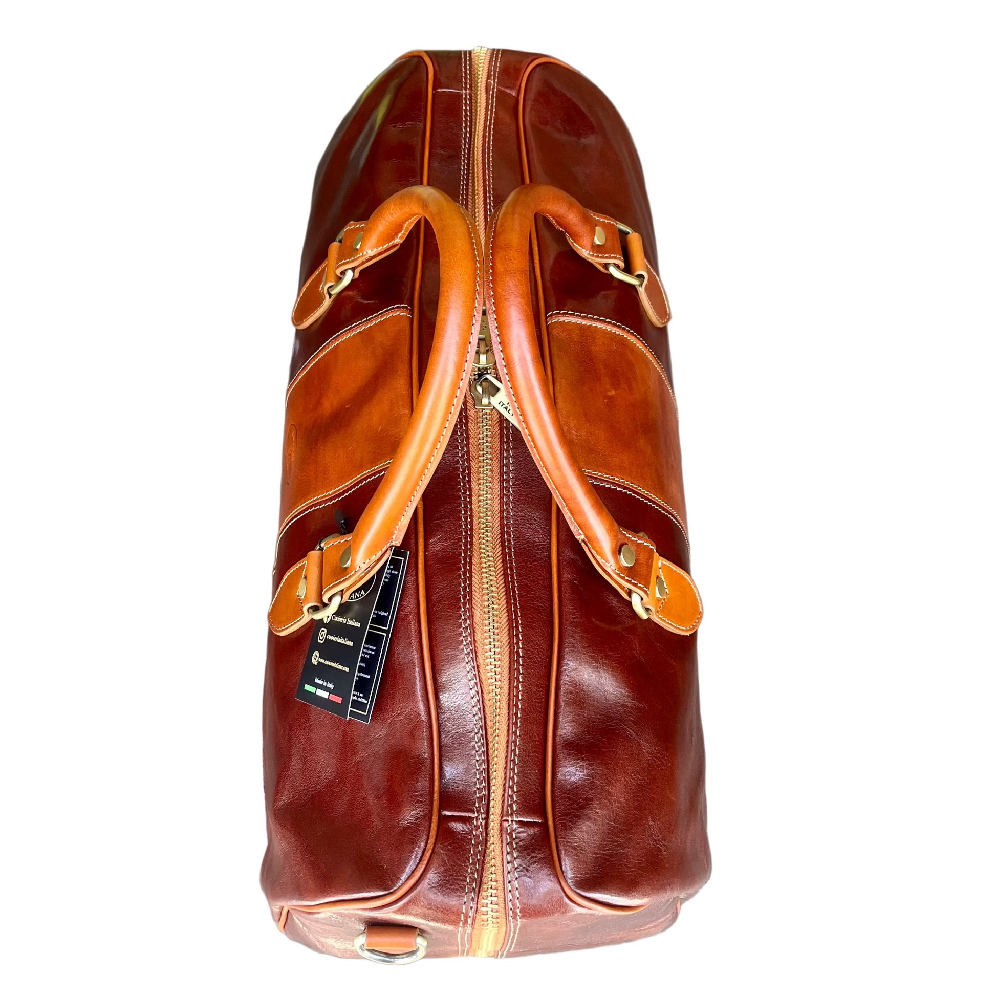 Borsone in pelle bicolore marrone e cuoio naturale | Bagaglio a mano artigianale Made in Italy – Cuoieria Italiana