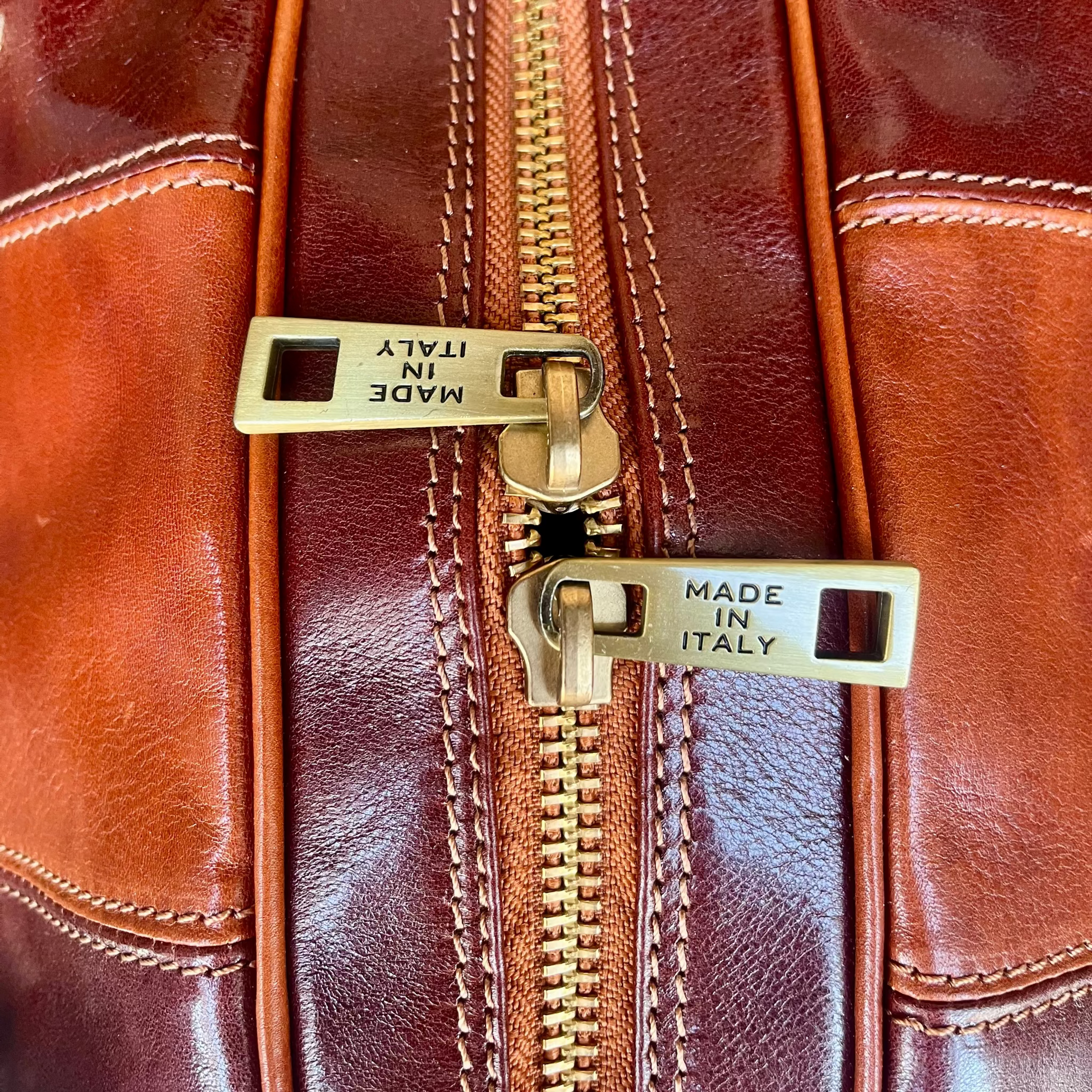 Borsone in pelle bicolore in tinta marrone e cuoio naturale – Cuoieria Italiana