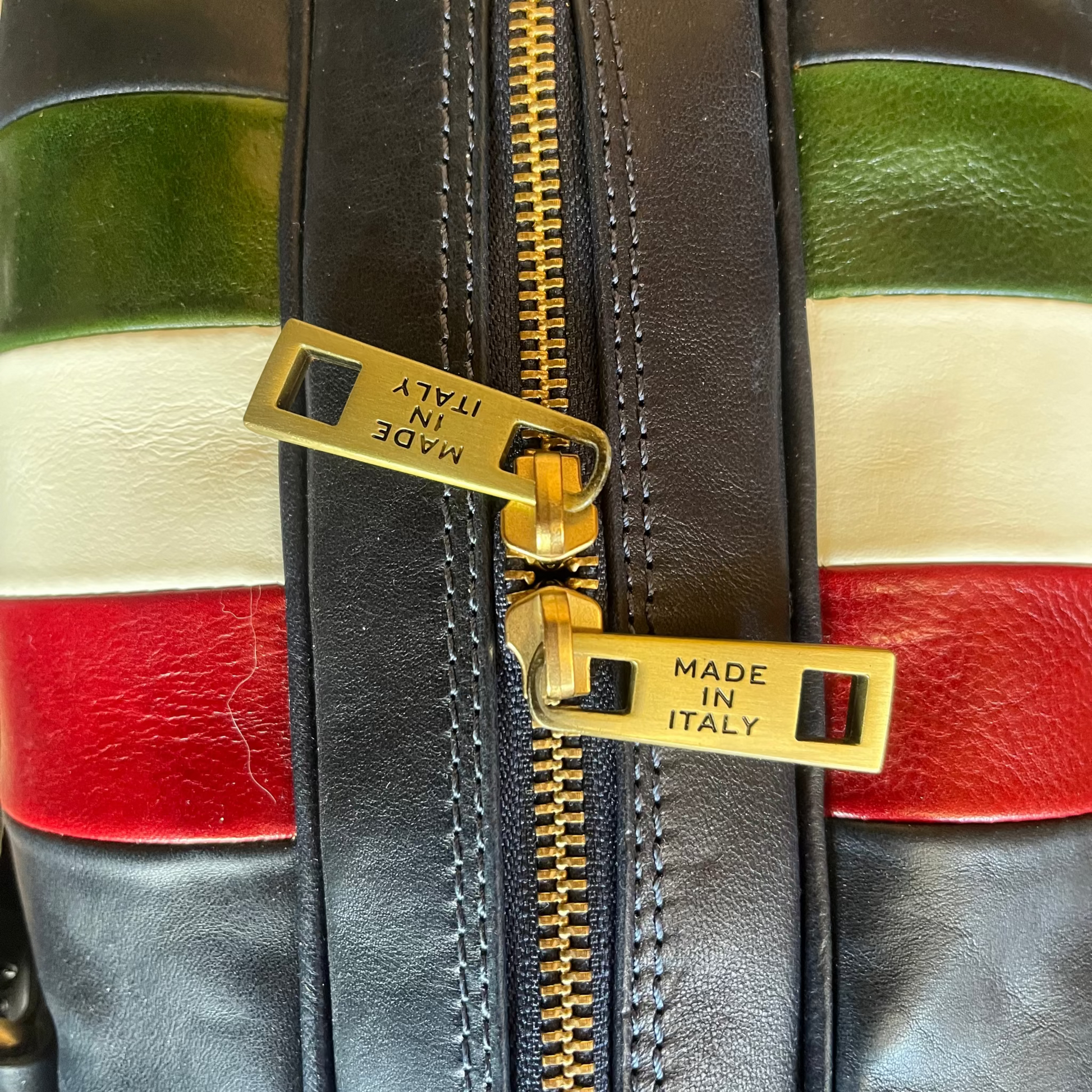 Borsone in pelle blu Navy opaco con tricolore – Cuoieria Italiana