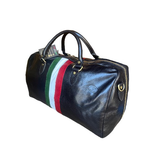 Borsone in pelle nera con tricolore – Bagaglio a mano artigianale | Made in Italy – Cuoieria Italiana