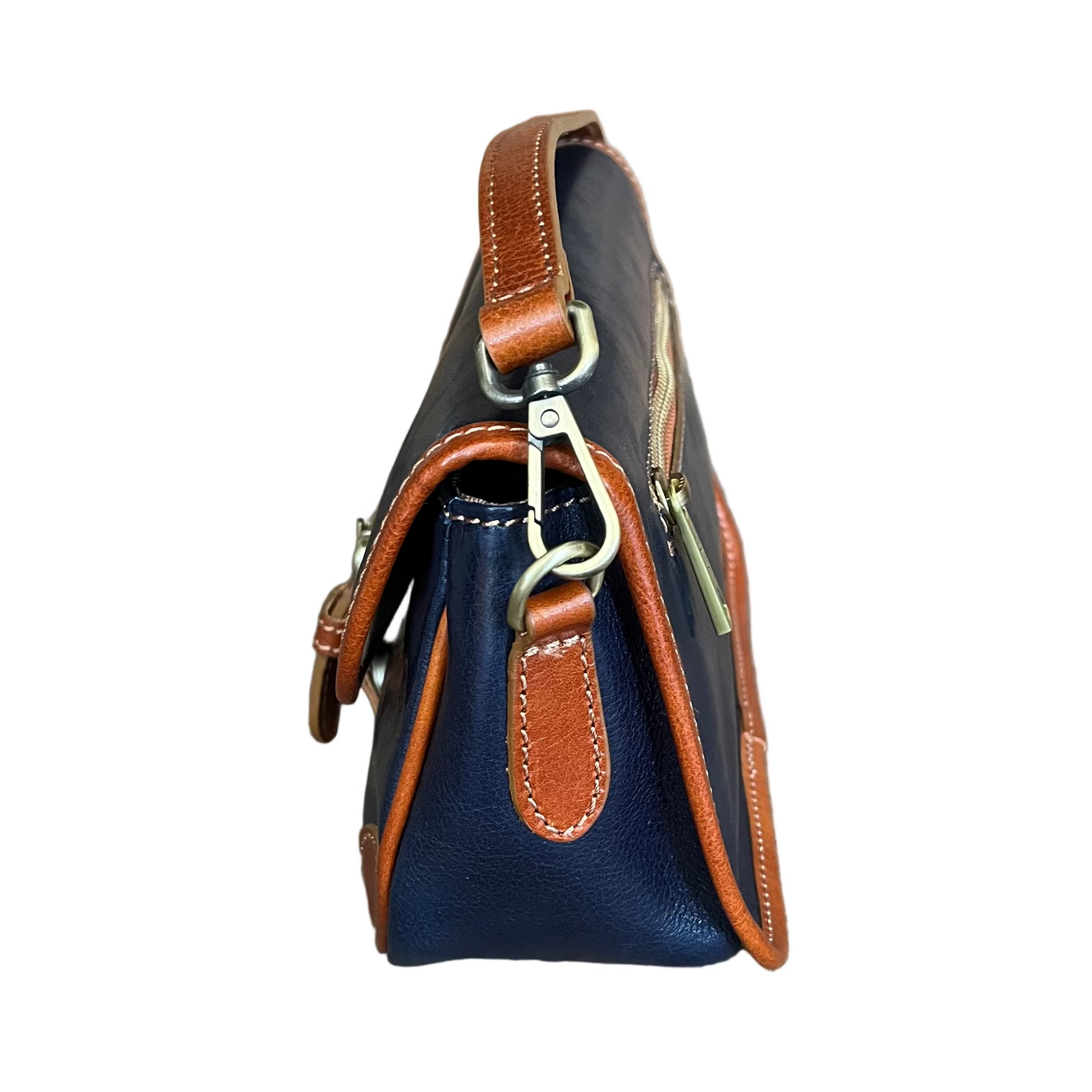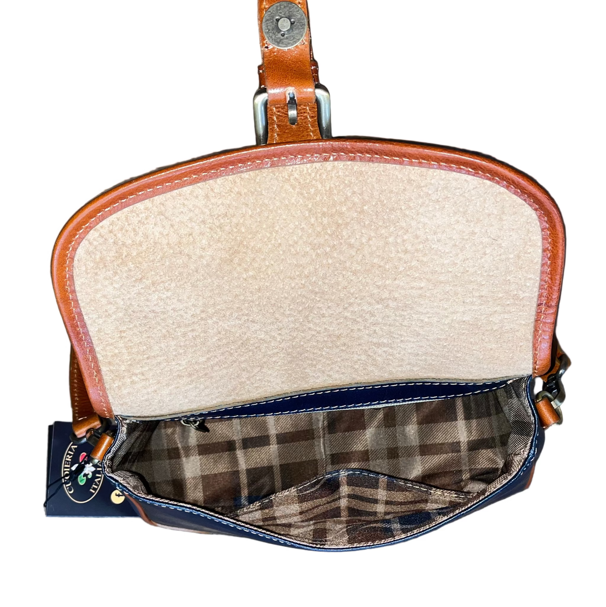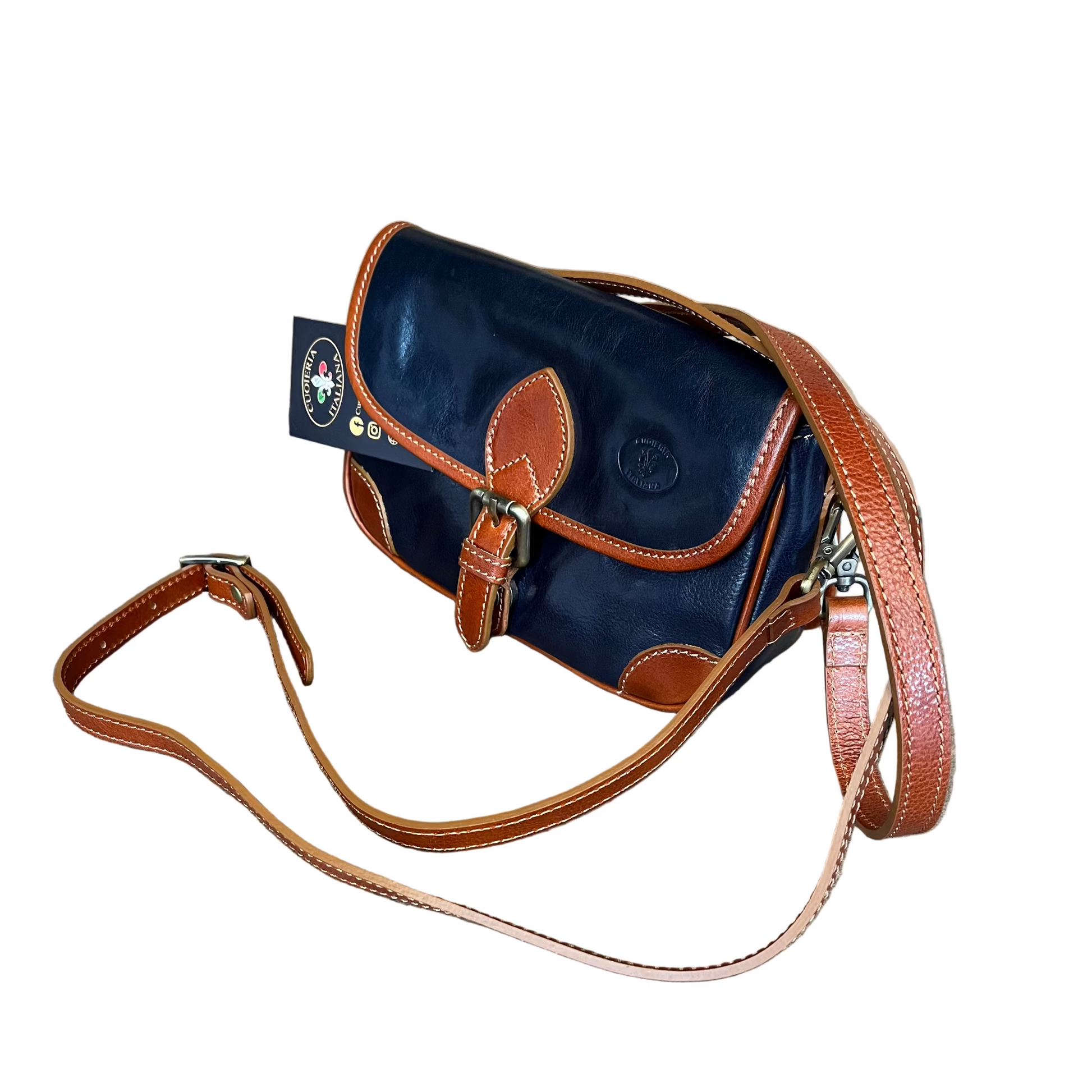 Piccola, elegante e realizzata interamente a mano, la Postino Compatta con maniglia e tracolla è l’espressione perfetta del design artigianale italiano.