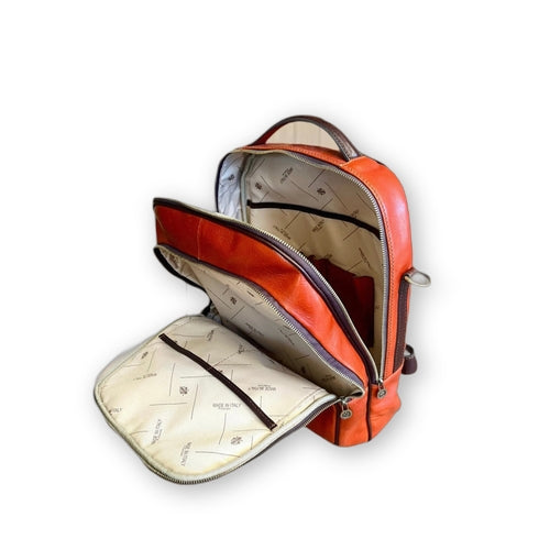 Unisce la praticità di uno zaino business alla raffinatezza della pelletteria artigianale toscana.
